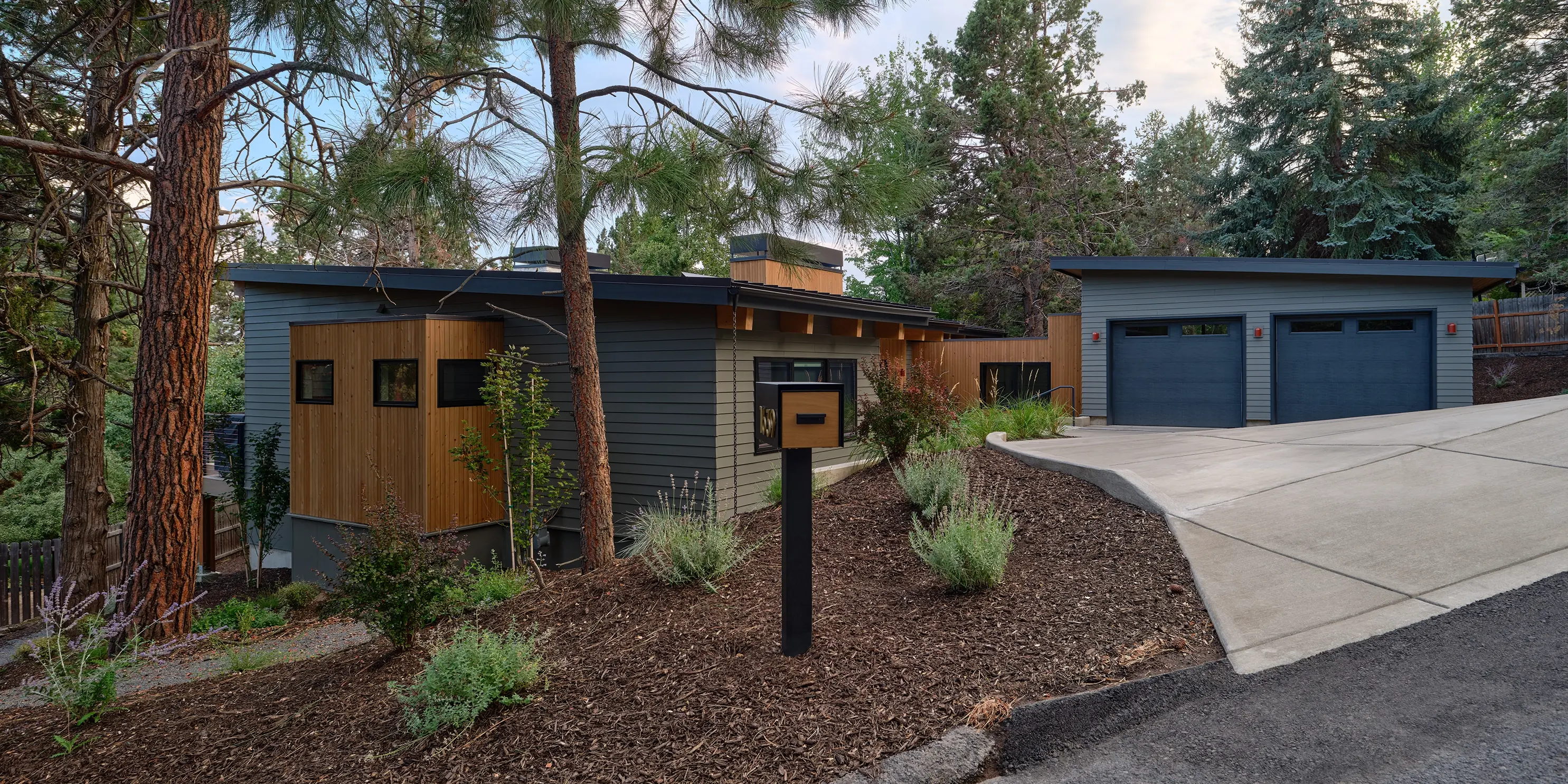 Too much slope for a single story, not enough for a daylight basement, the road sitting higher than the roof. So we designed to it.